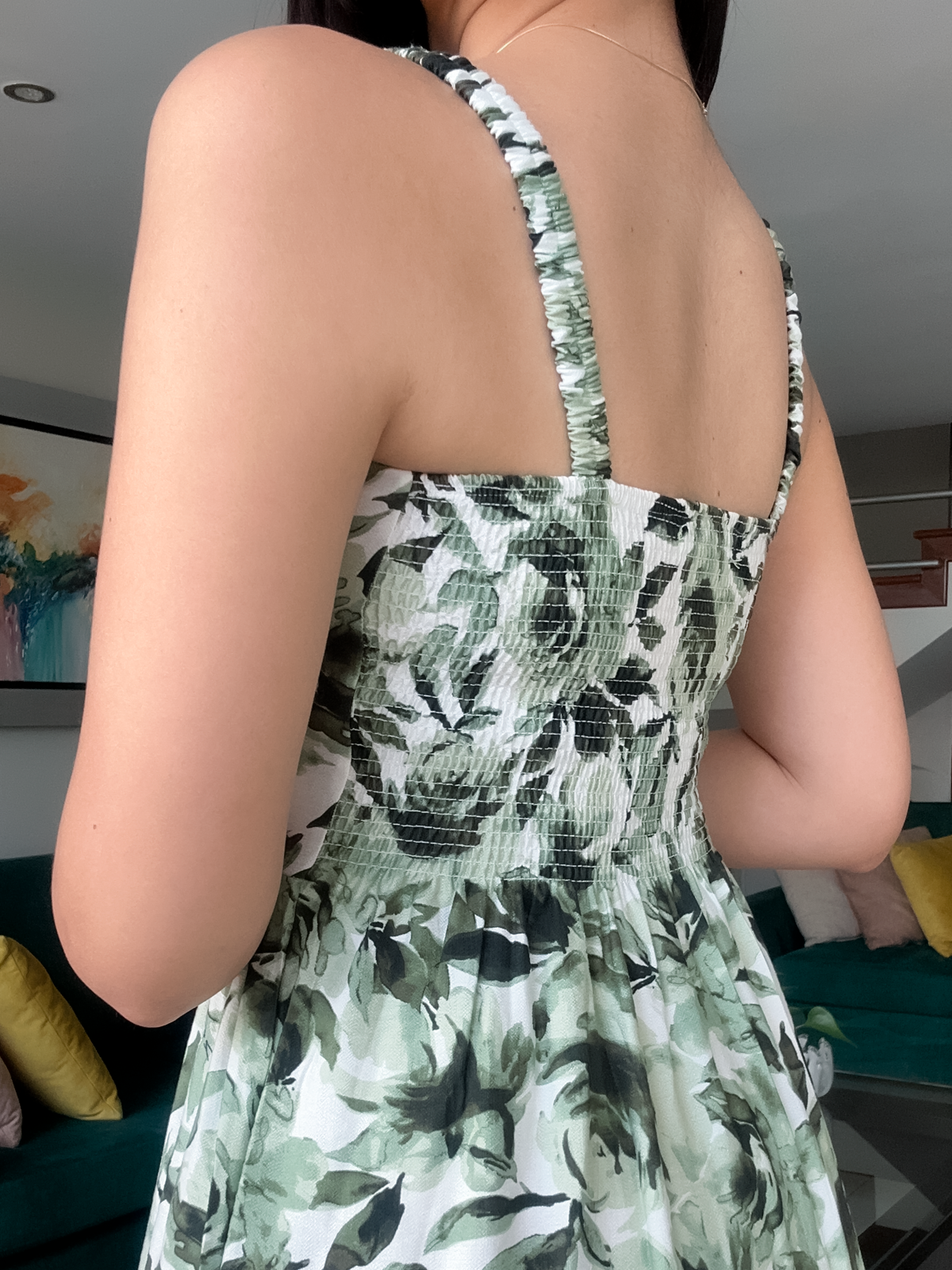 Vestido con multiagujas en la espalda, elástico en la tira y falda en 3 tiempos.